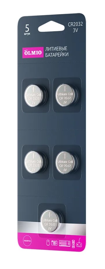 Батарейка CR2032 Olmio/Ergolux, 3V, литиевая, 5шт в отрывном блистере [CR2032-05B]