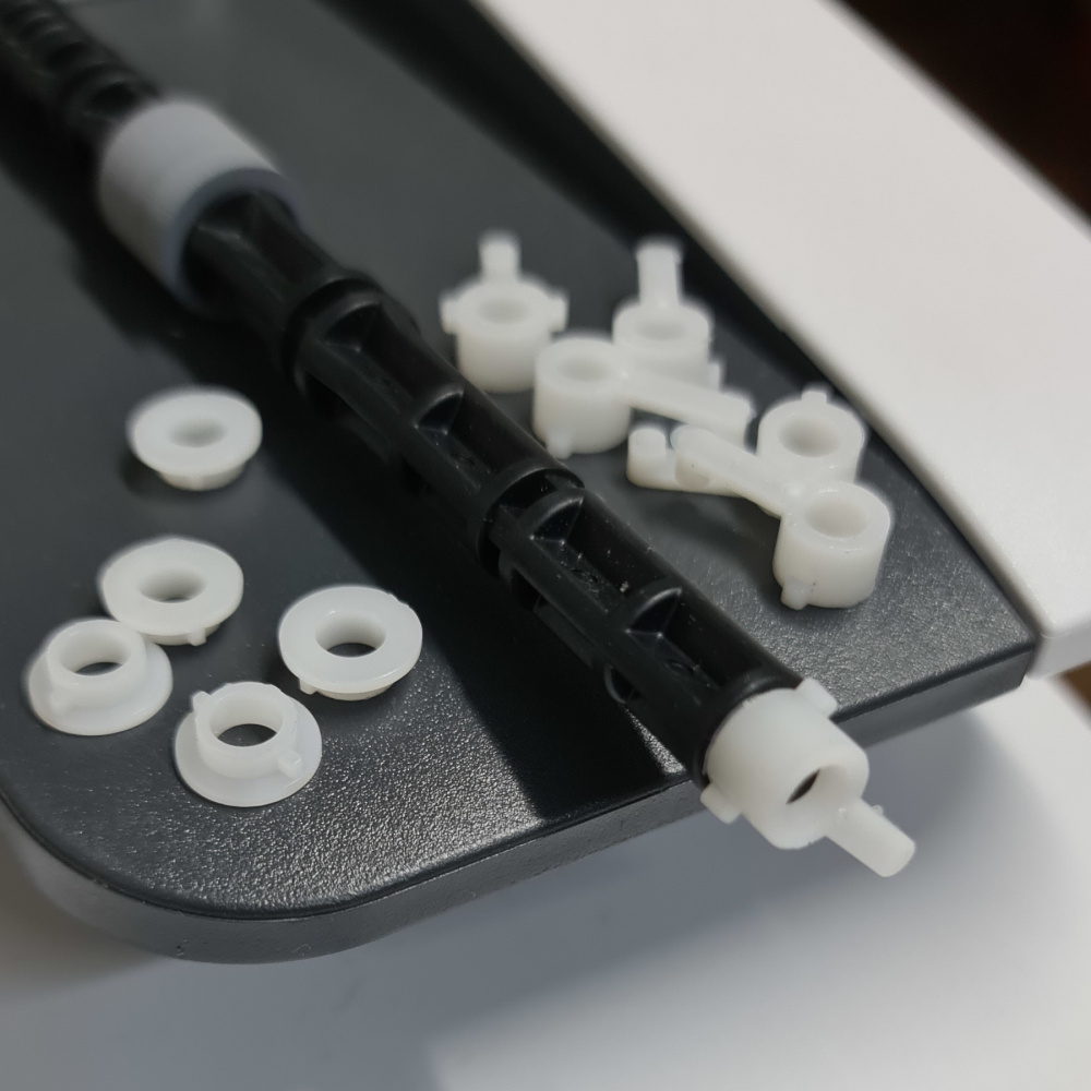 Бушинг - втулка вала выхода бумаги (шашлык) отлита из POM-пластика.