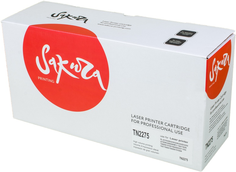 Картридж SAKURA TN-2275 для Brother HL-2220/ 2230/ 2240/ 2242/ 2250/ 2270 MFC-7290/ 7360/ 7470/ 7460/ 7860 DCP-7057/ 7060/ 7065/ 7055 FAX-2840/ 2890/